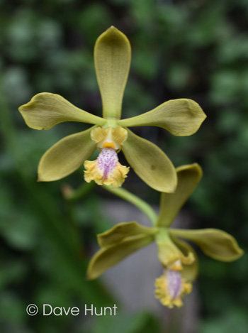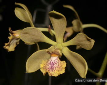 (‘Oreana Heaven’ x ‘Fragrant Tea’) (approximately 25 seedlings per flask). Species: Encyclia ionosma is endemic to Southeast Brazil in the Atlantic Rainforest in the states of Espírito Santo, Rio de Janeiro, São Paulo and possibly in Minas Gerais. It is a fragrant species that is described as violet-scented. It is a medium sized plant that blooms in late spring and summer on an erect, 12" tall inflorescence with up to 12 flowers. The flower size is 1.25”. According to taxonomic authorities this is a valid species and Encyclia euosma is considered synonym. Culture: I have no personal experience growing this species, but can pass on the comments from a friend, Kyryll Savchenko. "I’ve been growing this species for three years and does really well for me with intermediate winters (nights are around 56 F, days are up to 75F) and warm-intermediate summers (60-65 nights and 75-90F days). It is mounted on a cedar plank with a little bit of moss and is watered year-round with RO water and dilute fertilizer at around 200 ppm. It is fully dry or almost dry before it is watered again, though. It receives pretty bright light but not Vanda bright, more like Cattleya bright. It is also a very compact plant with fragrant flowers, much smaller than most other Encyclia plants. I like it very much." Parents: I do not have pictures of the parents, so show here some images that show the species well. My thanks to Cássio van den Berg and Dave Hunt for permission to use their images.