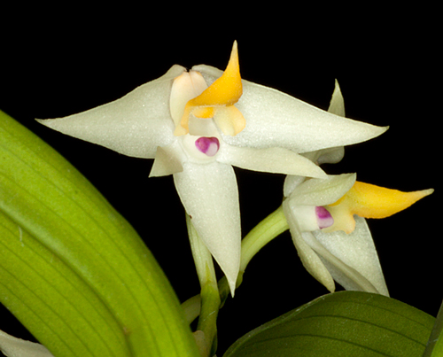 Sold out Polystachya fallax back cross #2454 (approximately 25 seedlings per flask). The Species: This miniature species is from central east Africa at elevations of 4500 to 5275 feet in rainforest. The 1" wide, non-resupinate (upside down) flowers are noted for their fragrance and are long-lasting. Up to 7 flowers per inflorescence. The plants have a climbing habit, but do well potted. Mature growths are about 4" tall. I love this species. I have only been able to find one clone of it and made a selfing of that (Polystachya fallax 'Spring Hill') in 2003. This cross is with one of the seedlings of that selfing crossed back to the parent. Culture: I grow this species in intermediate to cool-intermediate conditions, moderate light levels and regular dilute fertilizer. I have grown it well potted in fine bark mix and also mounted. It is watered year-round just as it approaches dryness. Capsule Parent: a selected seedling from a selfing of Polystachya fallax 'Spring Hill' Pollen parent: Polystachya fallax 'Spring Hill' |