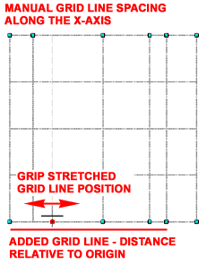 Add Grid Line - allows you to define a new grid line based on a distance from the grid object's origin ( usually lower left corner ). For typical use, you will need to set the Layout Mode to Manual so that your new grid line actually gets placed where you expect it to go. See comments on Remove Grid Line for more details. |