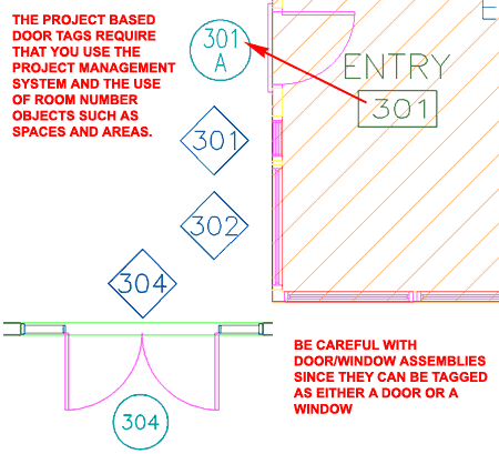 ![]() Illustrated above I show one of the Project Based Door Tags that should jump out at most users who have multiple floors to deal with. The only problem with these Tags is that you have to know a bit more about ADT and use that knowledge in order to take full advantage of these Tag types. In order for the Tag to automatically read the Room Number + the Floor Number ( 3 = Floor Number and 01 = Space Number ), you need to use the Project Management System and some form of Room Number identifying Object like a Space, Area or Slab. The Space Object, illustrated above as diagonal lines, reads the Floor Number from the Project Data while the Project Based Door Tag reads the Space Property Set Data when Tagging the Door. Frankly, though this is an impressive feature, I am not a fan of this Tagging System since it requires some manual input of Data. What I do like is the addition of the Floor Level as a Prefix and I may attempt to create a custom Door Tag that takes advantage of that feature without other Text in the Symbol.