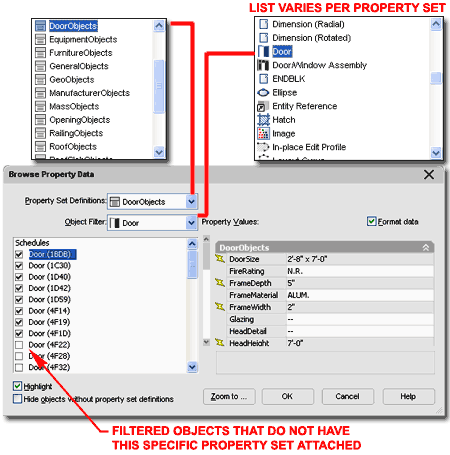 APPLIES TO: By checking Object or Object Style Names in the left-hand pane of the Property Set Definition Properties dialog box, you set the Filter for those Objects and prevent accidental use of this Data for other Objects or Object Styles.
