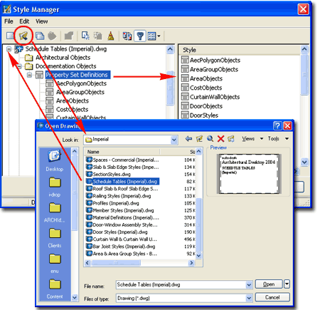 For Property Set Definition Styles, you can use the Style Manager to load, modify, delete and create new Property Set Definition Styles. The Confusing aspect of Loading Predefined Property Set Definition Styles is that they are not in a drawing file of their own but rather part of the Schedule Tables (Imperial).dwg and Schedule Tables (Metric).dwg files. After you realize where these Styles are, it becomes logical that they are located together with the Schedule Styles but they were in a separate file in the past - called "PropertySetDefs.dwg"