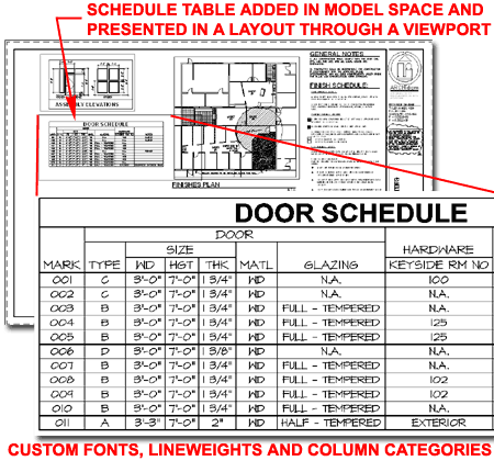 If you combine these great options with the Display Properties for the Component Layers, you can create a rather attractive Schedule Table with great fonts and lineweights. |