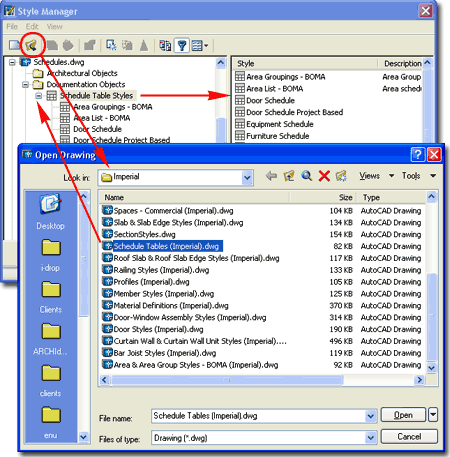 ![]() For local installations of ADT, you are likely to find the Imperial or Metric Schedule Table Styles in the Styles Folder as illustrated to the left. The full path to this location may vary but typically it is as illustrated. On a Network based installation of ADT, these Styles should be on a captured drive (like "G:\offices standards") or similar location with a folder name that indicates Styles. Consult your CAD or IT manager if you cannot locate the Styles Folder. Schedule Tables (Imperial).dwg Schedule Tables (Metric).dwg |