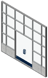 Depending on how many design features you have put into your custom Curtain Wall Styles, the task of producing the desired Plan View display could proved to be nearly as difficult as creating the Style to begin with. If you span multiple floor levels with one Curtain Wall Object, you may find that one Plan Display is only good for one floor. Illustrated to the right I show a simple Curtain Wall Object for a single floor level with entry doors inserted as "Infill" and glazed panels in all of the adjacent "Cells". Since Plan, Plan High Detail and Plan Low Detail all offer the same set of Display Components, it will not matter for this discussion which one you are working with. In the example to the right I do not show the Below Display Component because it would prevent us from seeing the Above Display Component. Generally, I do not use the Hatch Patterns in my Curtain Walls but you may want to us them for Presentation drawings. Notice that though I have Doors as an Infill, there is no control for the Display of the Door Style within the Curtain Wall Display Components list. For custom Objects, you must work directly with their own Style Properties. As you can see, the list of Display Components and what they control is fairly simple to comprehend; it's the Cutting Plane subject that is the real key to controlling what you see in Plan. |