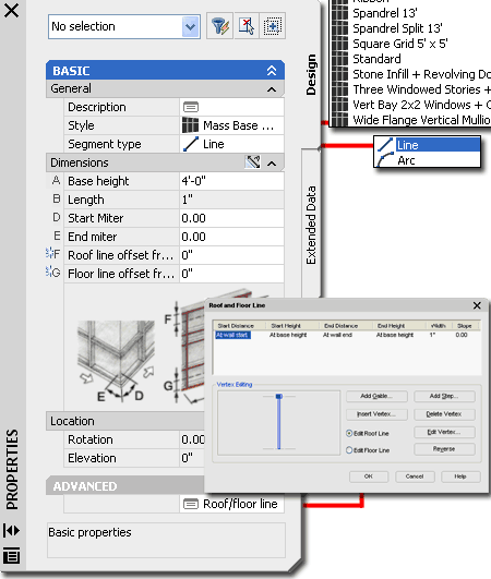Wall Properties - Roof/Floor Line tab