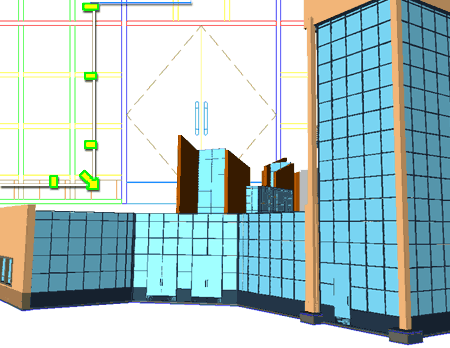 ![]() Since Curtain Walls can prove to be rather complex and difficult for people to get going with, we have found that allowing users to simply create a regular Wall object first and then converting it later, keeps a job going without early interruptions. As you can see from the illustration above, even the "Standard" Curtain Wall Style can cause project delays due to simple, but complex, matters of mullion spacing and corner cleanup issues. |
