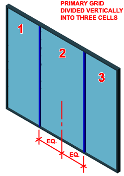 Illustrated to the left I show that because I only have one Cell Assignment for my Primary Grid, that Assignment will automatically be applied to each of the three Cells defined by the Primary Grid Division. |