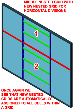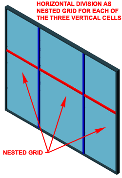In order to make a true grid that used both Horizontal and Vertical Mullions, I show that I have to add yet another Nested Grid because one grid can only define one Division.
