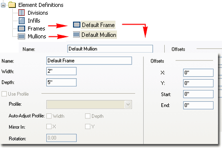 For my example I set the Frame Width and Depth to values a bit greater than those of the Mullions. Later I will discuss how you can work with individual Frame and Mullions to create such things as custom shapes and dimensions for Sills |