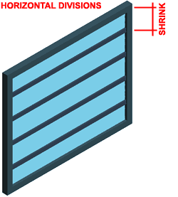 For the configuration of this Horizontal Division, I set the Orientation to Horizontal, used the Fixed Cell Dimension to set a Cell Dimension of 24" [610mm]. Because I expect to use this Division for the top of this grid and not the bottom, I have set the Shrink to Top only. |