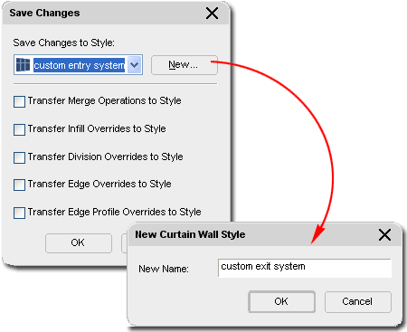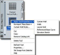 This set of options simply takes you directly to the specific tabs on the current Curtain Wall Styles dialogue box that control these settings. This option is only available when "Edit in Place" mode has been activated. |