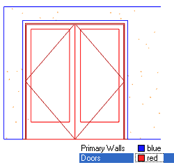 Illustrated to the right I show the same two Component Names created in the steps above. If you recall, a Filter was set to find the Walls and the Doors based upon a Color within a particular Context ( like a subdivision number ). After filtering, we get to set new Display Properties here as illustrated to the right and left with the Blue Primary Walls and Red Doors. If you expand on this simple example, you should find that you can get some great results that come closer to how you have been drawing your elevations in regular AutoCAD. |