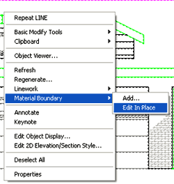 Boundary - Edit in Place Once you have applied a Material Boundary, as outlined above, you can Modify it by using the "Edit In Place" menu option illustrated to the left. This option will only be available once a Material Boundary has been Added.