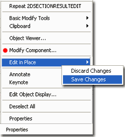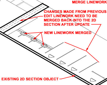 New Linework can be Merged into a 2D Section Object by using the Merge option from the object-specific pop-up menu; acquired by selecting an Section Object and right-clicking. When you Select one or more objects to Merge, the Select Linework Component dialog box will appear requesting that you assign the Merged Linework to a Component Name ( as discussed above ).