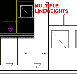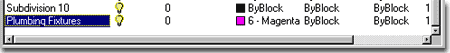 On the bottom of the Layer /Color / Linetype Component list, you should now find any custom Component Names that you created and used on the Components and Design Rules tabs of the 2D Section/Elevation Styles dialogue box. By creating unique components, you can color them for lineweight control, as illustrated to the right. From the examples and discussion above, the plumbing fixtures will now be assigned Color 6 - Magenta. |