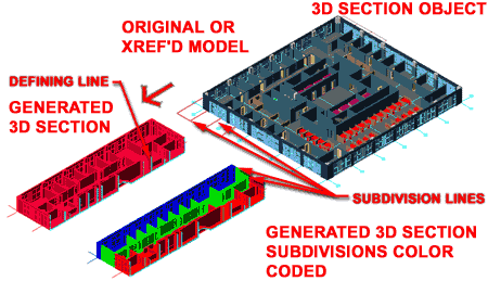 Illustrated to the right, I show the default 3D Section object and how the same 3D Section object can be adjusted to reflect the Color changes ( lineweights ) for the Subdivision lines on the Section Line object. To change the Colors, as illustrated, select the 3D Section object, right-click and use Edit Object Display... as outlined below.