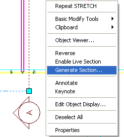 Though this command can be activated by typing or creating a custom tool, the easiest way to Regenerate is to Select an Section Object ( not the Section Line Object ), right-click on the mouse and select Regenerate... off of the object-specific pop-up menu - illustrated left. You can only Regenerate one Section Object at a time but you can Refresh as many as you wish to Select. Note: |