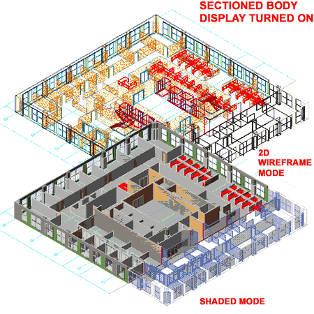 The purpose of this display option is primarly as a Shaded mode or Rendered presentation and thus you will find that it has the greatest impact when using the Solid Shademodes with Enable Materials active under the 3D Graphics System Configuration settings on the Options dialog. The homogenous semi-transparent effect comes from the "General.Sectioned.Body" Material Definition that has been assigned as a default Rendering Material for most default objects in ADT.