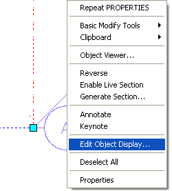 Illustrated to the right, I show the default 2D Section object and how the same 2D Section object can be adjusted to reflect the Color changes ( lineweights ) for the Subdivision line on the Section Line object. To change the Colors, as illustrated, select the 2D Section object, right-click and use Edit Object Display... as outlined below.