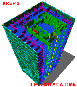 When you get ready to use the Generate Sections ( not Live Sections ) dialog box, you will have 2 choices for how you want to take the next step. The first choice allows you to create a Section that is still 3-Dimensional but with the power to control lineweights relative to depth of field. The second choice allows you to create a 2-Dimensional Section with lineweight control. Single Building Model vs. Composite Building Model Assembling a body of work in order to create a Section is another subject that can be discussed and debated greatly. There does seem to be a majority vote on the Xref approach rather than attempting to build one model in one file that solves all documentation needs. ADT's Project Browser emphasizes this approach and finally advocates the concept that buildings are made of pieces brought together rather than a whole broken apart. Though I believe one individual could probably make the one-model-does-all scenario work rather well, I would never advocate such a solution. Even on a small project, like a one-room remodel, I rely on Xref's. By separating as much as possible into unique files, you not only provide others with the opportunity to work on a project simultaneously, but you provide yourself with another form of Layering. Though I completely comprehend the idea that if more is in one file, you can more easily edit it, I have found that I am actually more likely to lose information in the clutter. Instead, I simply run many files open at the same time and refer back and forth when necessary or rely on Edit-in-Place functionality. By the time you are ready to Generate Sections, you should also have one or more Composite files ready since most of your working drawings probably have everything else Xref'd in. I usually create a Model file where I Xref everything in and add other things that I want for Perspectives, Renderings, Sections and/or Elevations; like 3D topographic contour work, street and curb information, adjacent and background information and decorative elements such as cars, trees and people. |