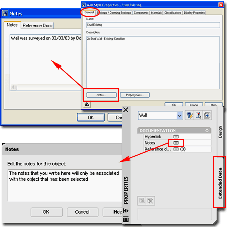 Notes offer the option to include written notes about a single object on a drawing or an entire Object Style. The primary problem with the use of Notes is that there is no obvious graphical indication on the screen that one or more objects have Notes so find them is a bit of work unless you know that they exist.