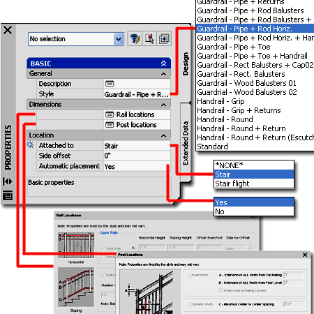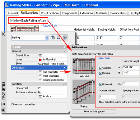 Styles - Post Locations tab Allow Each Railing to Vary - this checkbox will provide access to these settings through the Properties Palette. Fixed Posts - on/off