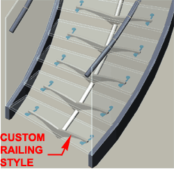ADT comes with a short list of predefined Stair Styles but a fairly extensive list of predefined Railing Styles that you can only access through the Style Manager. If you do a lot of work with Stairs and Railings, you may want to assemble a list of predefined Styles in the Content Browser and/or as a Palette where you can preset the Defaults.