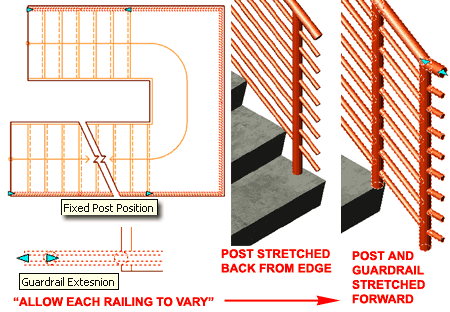 If you check the "Allow Each Railing to Vary" checkbox for this tab, you can actually use Grips to Stretch the Extension of Guardrails and/or Handrails. Guardrail Extensions also affect Balusters and Bottomrails.