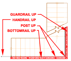 checkbox for posts. If you uncheck this, you will also be turning off Dynamic Posts. B - Extension of All Posts from Floor Level - this value field can be used to project Posts down beyond the Tread (Floor) level using a positive number. Negative numbers can be used to raise Post bases up from the the Tread (Floor). Values used here lengthen or shorten the Post. Extreme negative values can actually project a Post up past it's top. This option is useful for Deck Railings where the posts need to be fixed to the ground but does not work well for achieving the same results on Railings that are Anchored to Stairs because of the slope. Fixed Posts at Railing Corners - this checkbox option places a Post at every Railing transition point from horizontal changes in direction to vertical transitions such as riser to landing. It will place a Post not only at all corners of landings but also at corner breaks where you may have done extensive Custom Edge modifications to your Stair. Dynamic Posts - on/off
