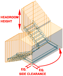 ![]() FLIGHT HEIGHT Maximum Limit type - a drop-down list offering three choices:*NONE*, Risers and Height. This option is similar to the Minimum Limit type - see comments above. When used with Straight Stairs, for example, it will force landings at points where the Maximum height has been reached and can thus be a terrific option for designing code compliant stairs that need to cover excessive heights ( this often occurs on exterior stair designs ). Landing Lengths are set on the Stair Style's Properties dialog box. INTERFERENCE Side Clearance - a value field where you can specify the headroom clearance for the sides of your stairs. Just as with the Headroom height, this is an option well suited for use with the SlabHole command to create a clearance hole in a floor slab around a Stair Object. This value affects both sides of a Stair equally. See comments for Headroom height. WORKSHEETS |
