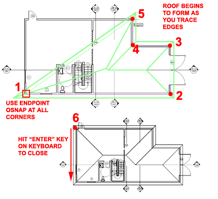 to select your Walls, make sure that you select "No" to the "Erase layout geometry? [Yes/No] <Y>: " Using the Pline method is one of my personal favorites because of how quickly you can make adjustments to the Pline and re-use it for the Convert to Roof routine. At times you have to experiment a bit to get the Roof right and if you have to pick all of those points around the exterior perimeter over and over, it gets rather frustrating. |