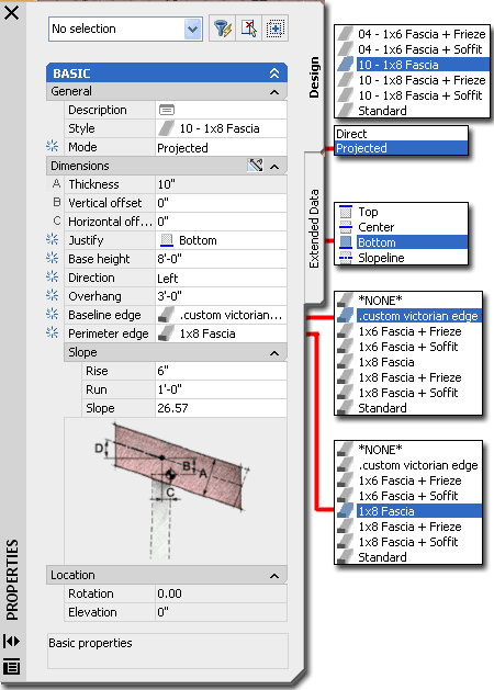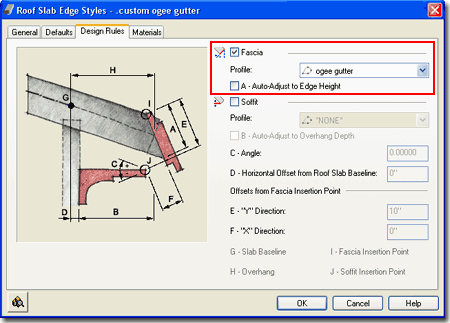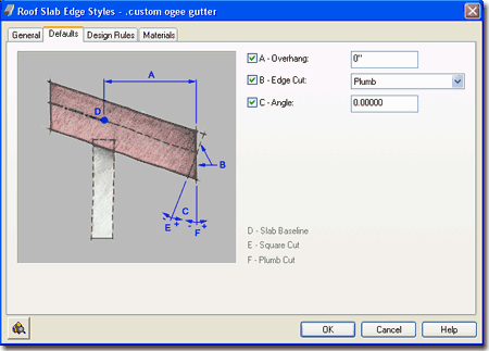 Be aware that all of the predefined Roof Slab Styles come with Roof Slab Edge Styles already assigned; hence the "Fascia" and "Soffit" references in their Names. Even the "Plumb Cut" and "Square Cut" Roof Slab Styles have Roof Slab Edge Style assignments. |