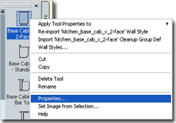 Illustrated to the left I show how right-clicking over a Tool Palette icon activates a pop-up menu with the Properties... option. Tool Properties vary according to the Objects they represent or the commands they activate. Some Tools will not offer any Properties that you can change and that may be because of the type of Tool or how the Tool is set to link back to its source in the Content Browser (read below for more on this subject). Illustrated to the right I show two sample Tool Property Palettes: one for a Wall and one for a Roof Slab. In both cases, you can use these settings to save yourself a huge amount of time by configuring their settings to produce the types of results you need on a regular and repeated basis; that way, you don't have to repeat the process of making these settings on the Properties Palette every time you use the same tool. |