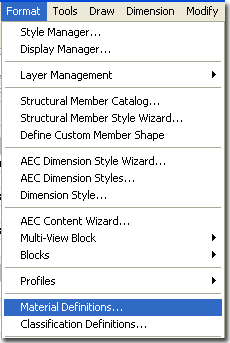 Illustrated above is the primary way to access the Material Definition Styles but you can also gain access to them by going to the Materials tab under the Object Style Properties dialog for most Objects. |