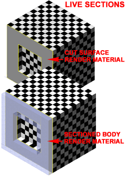 LIVE SECTION RENDERING Sectioned Body Render Material - use this drop-down list or Browse... button to Select any Render Material available in the current drawing. Most Objects in ADT include the "General.Sectioned Body" but you can actually use any Render Material you wish. You will only see this material under unique circumstances for Live Sections where the "AecToggleSectionedBody" has been used to display Body forms for Objects cut by the Section Tool. The default material looks much like a blue glass which works fairly well because of the transparency. Since all of the default Material Definition Styles use this Render Material, all objects appear the same but you could create a variety of transparent colors in VizRender to enhance this feature. |
