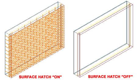 You can Toggle the Display of All Surface Hatch Patters On or Off by using the "ToggleSurfaceHatch" button on the Drawing Window Status Bar or by typing this command. Note: |