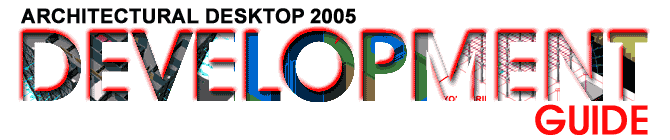 This writing, done in html, represents months and months of exhaustive investigation into the functionality of the tools presented in Autodesk's AutoCAD Architecture. The work began for Architectural Desktop 3.0 and concluded with release 2005. The Development Guide, 26 chapters with a preface, introduction and appendix represents just one of four guides I wrote for this product. I also wrote a Pre-design Guide, a Presentation Guide (also free) and a Deployment Guide. When I started writing, I believed that a new type of guide (something like an e-book) was a superior product because it could utilize hyperlinks and be updated regularly. The unfortunate reality was that the majority of our potential customers preferred a physical book and I started to look into converting the writing into PDF documents and working with publishers; both proved to be really difficult to deal with. As a result I invested my time in content creation (eParts and eKits) which has been a far more successful venture. As I give this work away I would like to thank those pioneering customers who purchased my earliest work and encouraged me to create better and better work. |