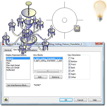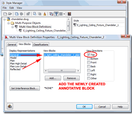 Problem After you have created a Block, you can create a Multi-View Block definition. In the illustration to the right I show that I have used the "MvBlock" command to "Define" a new lighting fixture. I Added the 2D Annotative Block to the General Display Representation and the Reflected Display Representation and set the View Direction for both, to "Top". |