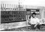 Mrs. Burbank, daughter of Press Democrat City Editor, L.G. Hitchcock, State Sentator Herbert Slater, H. Dana Bowers at dedication of Luther Burbank Memorial Highway 1936. Planting cork tree on plot of land dedicated for samll memorial plot. Black and white glossy. |