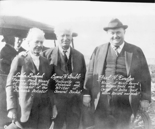 Fred Rindge, Ernest Grubb, and Luther Burbank at time Rindge awarded the world record for per acre potato crop. |