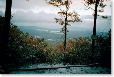 Snow during night. Awoke to 1" wet snow. About freezing. Some sun, very beautiful with oak colors covered with snow. Left shelter about 7:15. Trail a bit slippery, but not bad, and could be easily followed. Took bypass around Lion's Head due to snow, down through woods to Conn. 41, then through field and along roads in Salisbury. Up Barrick Mattif (fairly steep), cool and gray (just above freezing), no snow at lower altitudes. Nice woods walking past Rand's view to the north, then up to Prospect Mtn. for lunch. Long downhill (very hard on knees) to Housatonic. Limped through trail for disabled, arrived at meeting point on U.S. 7 about 2:30, where I met Pam. Beautiful sunny afternoon along river. Over to Aunt Greta and Uncle Frank's in Litchfield, where we stayed for the rest of the trip.