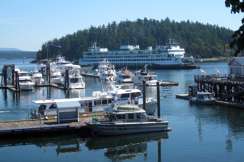 Board boat for Friday Harbor, cast off at 9 AM. Line is run by a local family for 3 generations; grandson pilots the boat and his mother bakes blueberry buckle for on-board sale.