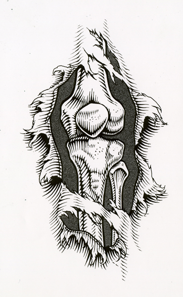 On to Powell Peralta to draw skateboard art. I was definitely influenced by Courtland Johnson who was Mr PP up to that point. This lead to using scratch board, a medium that allows you to work back and forth between the positive and negative. I evolved my pen & ink chops and personal style quite a bit during these years. The variety of projects was fantastic and made the job very stimulating and challenging at the same time. I also learned a lot about screen printing and preparing art for production there. All in all it was a wonderful experience and a time of tremendous growth as an artist.