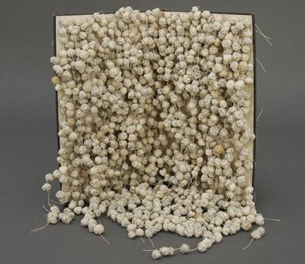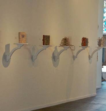 The instalation view ("Display possibility") illustrates wall shelves fabricated specially for the work.