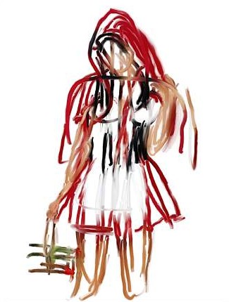 Deborah Oropallo "Red", 2007 Digital pigment print and acrylic on canvas 76 x 60 inches edition of 3 $20,000This work on canvas (if it is created on a printer, is it a painting?) begins as a woman's image drawn from the Internet and modified using a "painting" program. The software allows her to smear the information around preserving some of the source material and removing the balance. Her manipulation also creates the look of brushstrokes or other painterly styles. The final image is then printed onto canvas using pigments, not ink, and is given a final coating with clear acrylic.