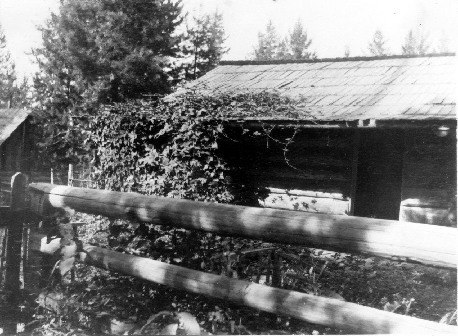 Each day in this improvised "room" in the bunk house must have seemed a week to Daisy with her infant to care for, and the meager facilities with which she had to work. And there were a good many of these days. The partners had quickly assumed ownership of their new business, and operated it themselves, without hired help, perhaps sixteen or more hours a day. This left scant time for arranging living quarters in a town where no vacant quarters existed. - However, before the snow was gone an opportunity came to buy a small log cabin and lot "on the hill". Now, all of Elk City was on a hill, but, as the road continued eastward a few hundred yards, the grade became steeper before again leveling off. This area contained scattered residential cabins, and was known by everyone as the only "on the hill". The rest of the settlement was "down town". The cabin itself was not new, was smaller and more squat than the average, and was built broad side rather than gable toward the road. In front, the roof extended outward a few feet, making a small shaded porch floored with rough lumber. From the eves of this porch to the ground tiny pine poles were set, around which a luxurious growth of hop vines twined during the summer months. The house had originally had only one room, but this had been divided by board partition into a bed room and living room. And on the rear, -and two steps down to conform with the ground contour,- a lean to room had been attached to serve as kitchen and dining area. To the rear of this, and near the kitchen door, was a wood shed, built of poles and shakes, and large enough to hold and keep dry a winter supply of cut pine wood. So, this was destined to be the home of Lee, Daisy and the young sprout for the next few years. |