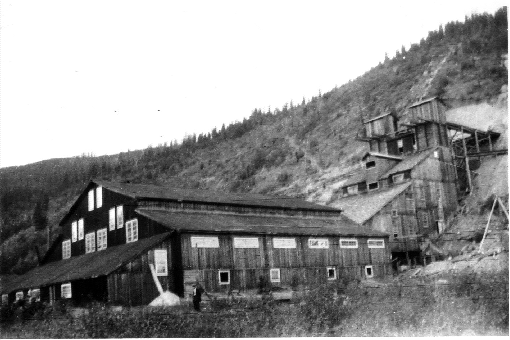 Then, only some twelve miles to the south was Oro Grande, another camp connected to Elk City by regular stage service. Oro Grande bloomed quite for a while due to the ambitious efforts of a company to extract gold from a "dyke", or heterogeneous large body of low grade ore. The development of the mine by "glory-hole" methods and the installation of a 20 stamp mill provided employment and excitement for a lively camp for some time. But apparently the low grade ore was too low grade for profitable operation, so, after a good trial run, the mill was closed down, the bloom faded, and the town simmered down to a few hopeful souls, still sure in their own minds that capital would again come back to take the gold from the mountain. |