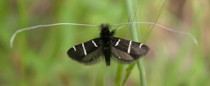 This is a very small day-flying moth with very long antennae.