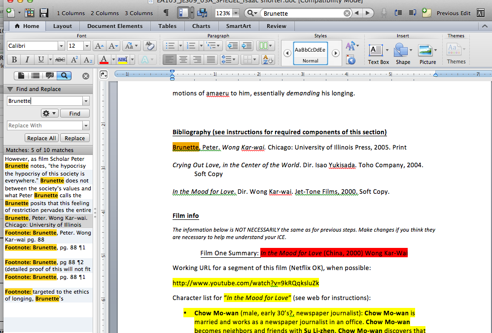 - Complete the bibliography, writing abstracts for outside secondary sources (that is, not the primary sources which will be the two films and the two premodern texts and perhaps other films and premodern texts) that you judge were important for the final form of your essay